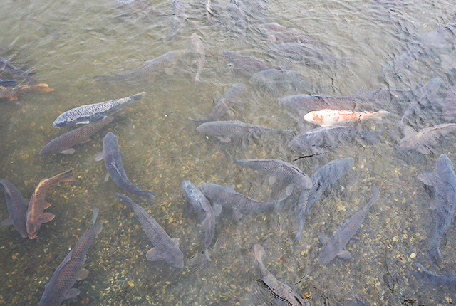 サーモンパークに入る前に我々をお出迎えしてくれたのが、鯉。鮭ちゃうんかい。サーモンパークの入場料を払わんやつには鯉がお似合いだってことかい。