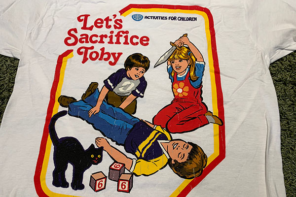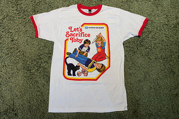 2018年の5月に買った「Wicked Clothes」。邪悪でやや不謹慎な子供たちのアクティビティがレトロな雰囲気で描かれるラグランTシャツが人気のブランドです。最近また新たなシリーズを買ったので見せびらかしたいと思います。こちらは「Let’s Sacrifice Toby(=トビーを生贄にしよう!)」