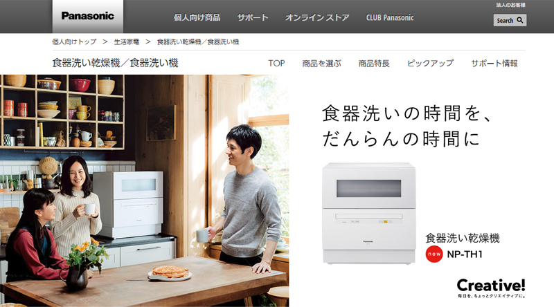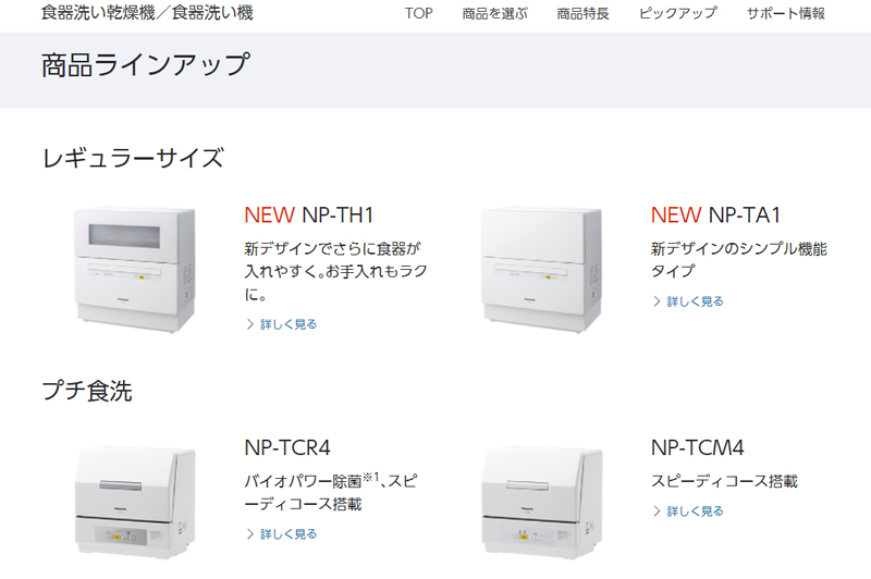というわけで色々調べてみたところ、現在、『食器洗い乾燥機』を製造しているのは、大手ではPanasonic(パナソニック)のみ。