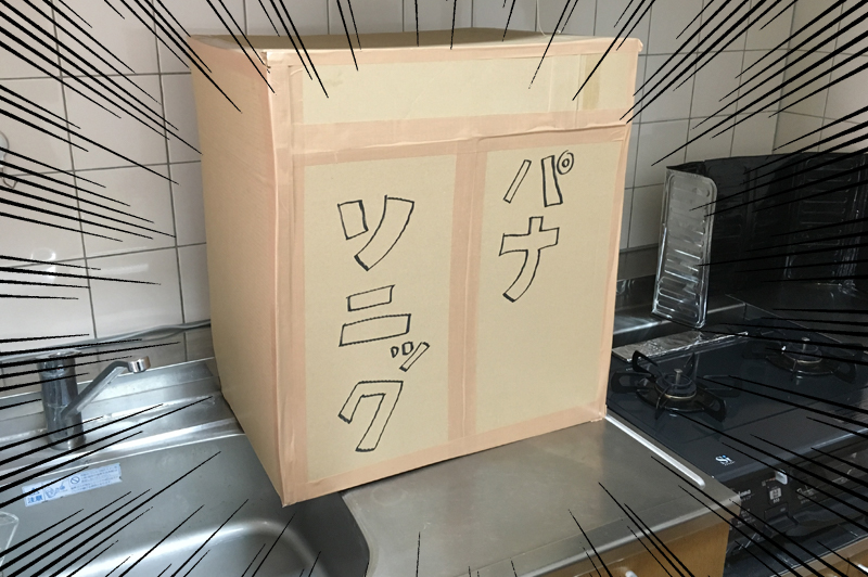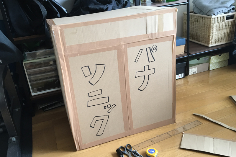 ちなみに今回はサイズ感を確かめるために、わざわざダンボールで箱を作りましたが……そんなことしなくても、Panasonicが提供してるアプリを使えば、AR(拡張現実)技術を使って、シミュレーションできます(店頭でQRコードの付いたカタログをもらってくるか、WEBカタログをプリントする必要があります→■)。