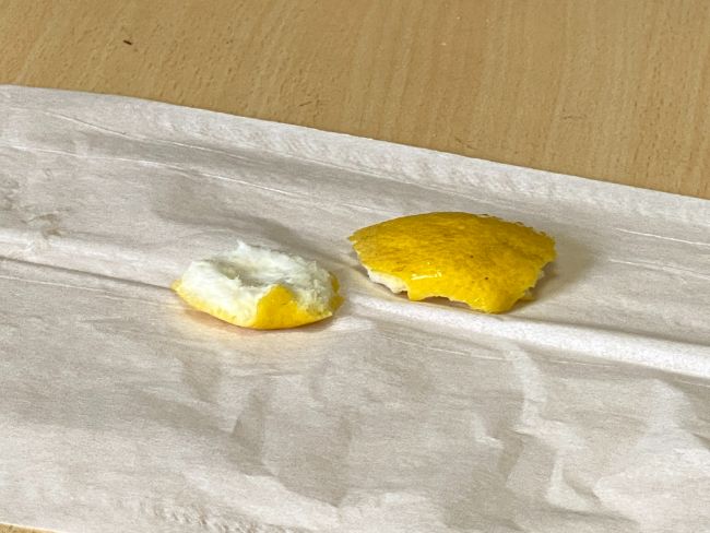 やっぱり中と外だと匂いの質も変わってきててより文旦の味に近づいてきてる。