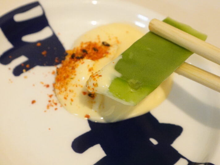 温かい酸味。酸辣湯(サンラータン)のような、好みが分かれそうな味ではありますが、自分は結構いけますね。ワサビ醤油が合う!