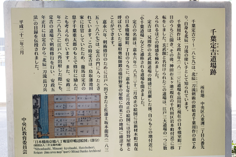 坂本龍馬は、同じ北辰一刀流でも千葉周作の弟の道場「桶町千葉道場」で剣を学んでいまして……一応おまけとしてそちらも訪ねてみました