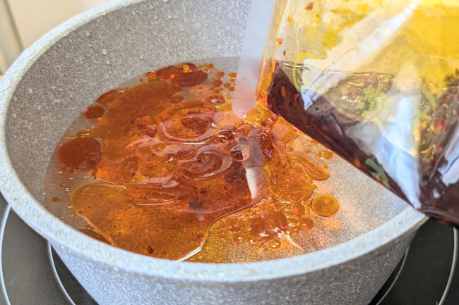 輸血パックかってぐらいドス黒くて怖いですね。花椒や八角、クローブなどがゴロゴロと入ってるのが分かります。