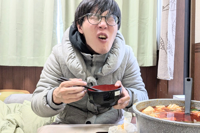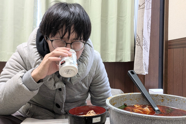 火鍋(+麦茶)と暖房効果により、身体が内からも外からも暖められ続ける。