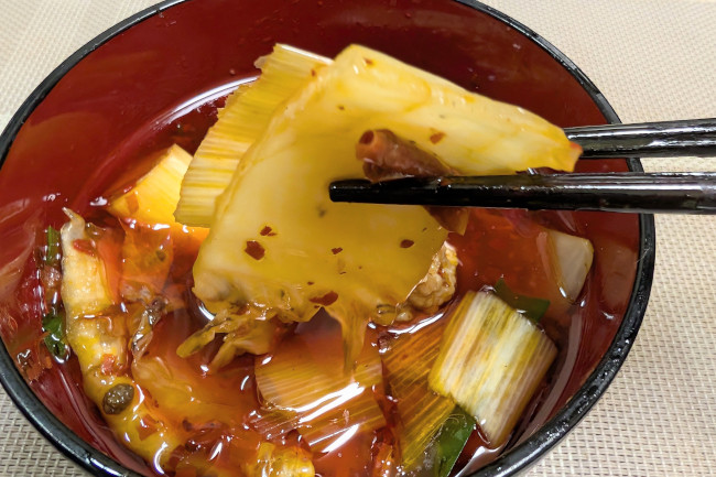 白菜が持つほのかな甘みなんて当然のごとく打ち消され、辛味を喉に運んでくるだけの白い板に成り果てます。