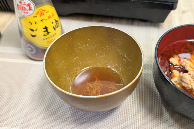 具材の表面がごま油でコーティングされるので、マイルドな味わいになって食べやすい。 なんなら普通に美味い!