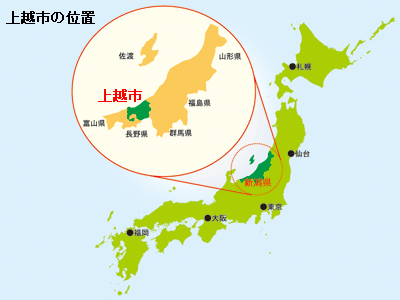 南北に広い新潟県の南西部に位置します。HIKAKINさんの育った妙高市、横澤夏子さんの育った糸魚川市と隣接しています。戦国時代ファンには、戦国最強のひとり、上杉謙信のお膝元として知られます。