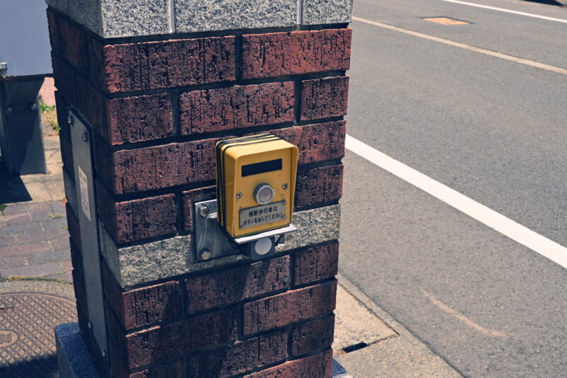 こちらの歩行者用押しボタンは、小学4年生の時に、友人のT君の家に遊びに行く際に道路を渡ろうとしたところ、周辺で交通整理をしていた男性に「押すな!」と思い切り怒られた押しボタンです。時すでに遅しでボタンを押してしまっており、男性は「押すなって言ったのに……。」と不平を漏らしていました。押してほしくなかったら、貼り紙をするなどして物理的に押せないようにしてください。まだ私は納得いってません。
