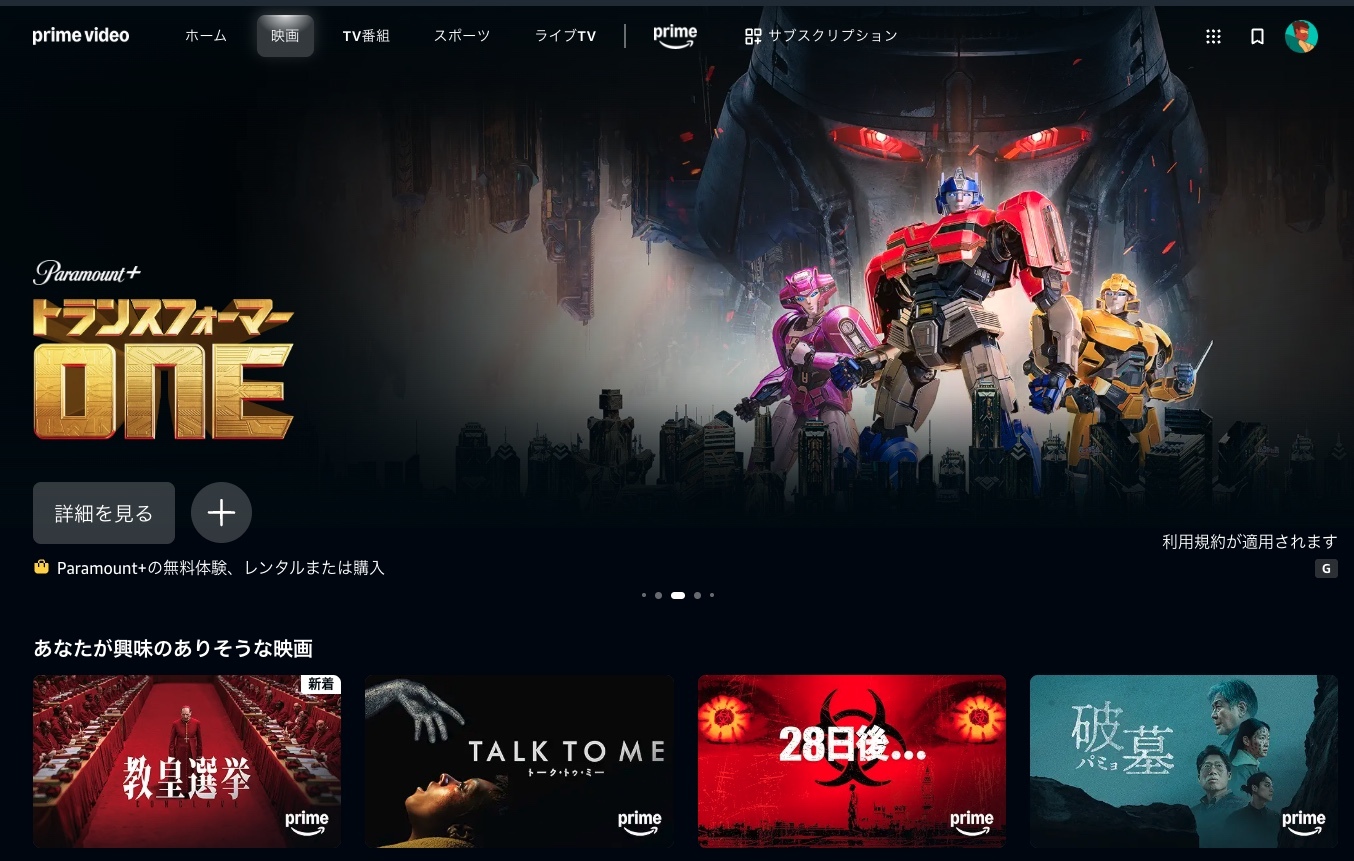 Amazonの映画サブスクサービス。プライム会員の特典ということもあり2022年の時点で会員数世界2位(2億人)のサービスとのこと。
