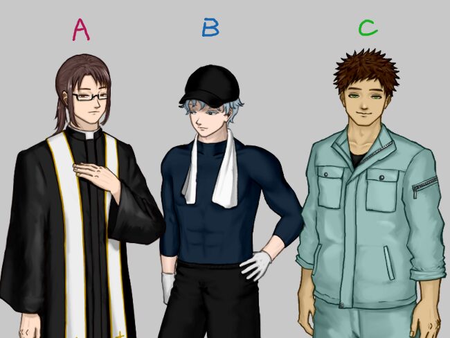 先ほど述べた「記事の企画で作った乙女ゲーム」ではこんな感じの3人の攻略対象キャラが登場し、