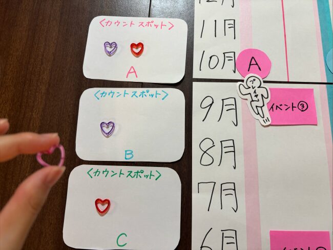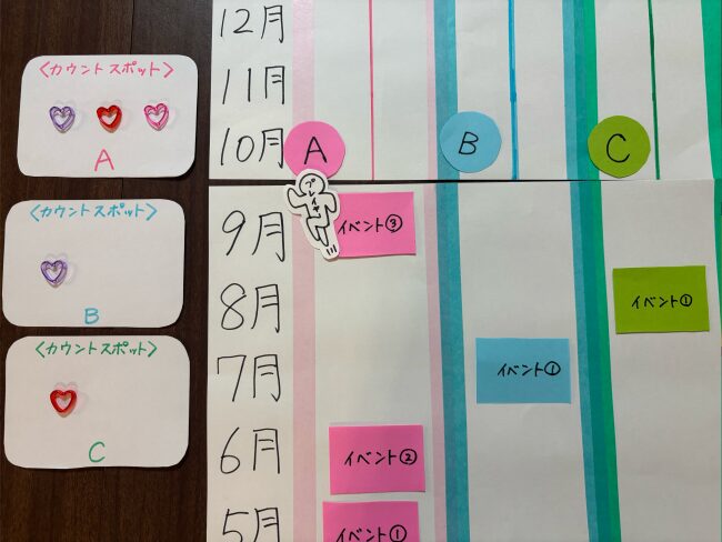 「誰のイベントを何回見たか」ビーズでカウントするスポットを設けてみましょう。