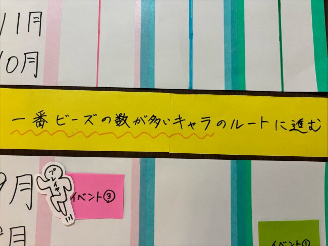 「一番ビーズの数が多いキャラのルートに進む」から…
