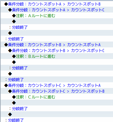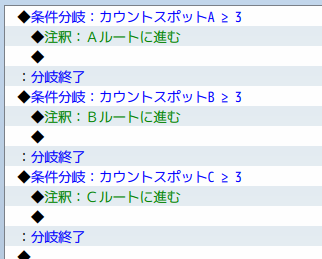 先ほど、ルート分岐の条件を「ビーズの数が3個以上のキャラのルートに進む」としましたね。