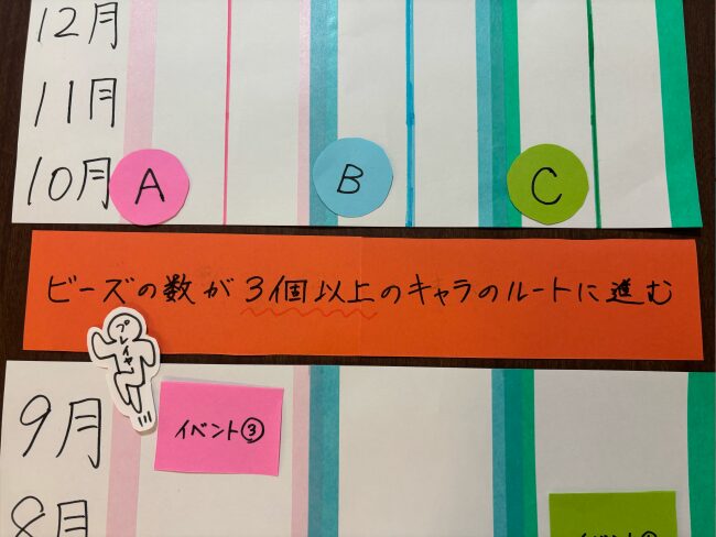 つまりこの9月と10月の間それぞれのキャラのルートに分岐をさせたいです。