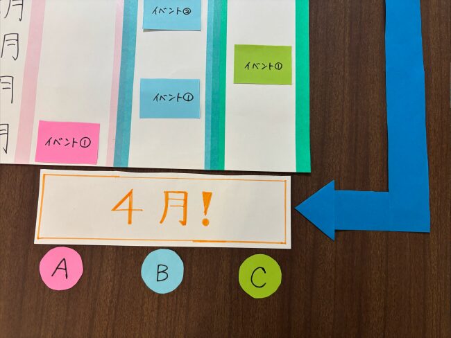 「ビーズの数が3個以上のキャラがいない場合、ゲームの最初に戻ってしまう」という矢印を用意してみましょう。