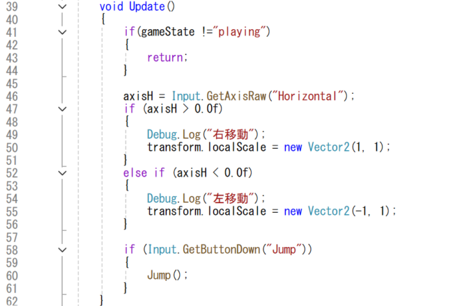 そんな基本的な動作でも、プログラムを書かないといけません(だからこそゲーム制作の自由度が大幅に上がるのでこれはこれで楽しい)