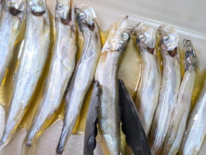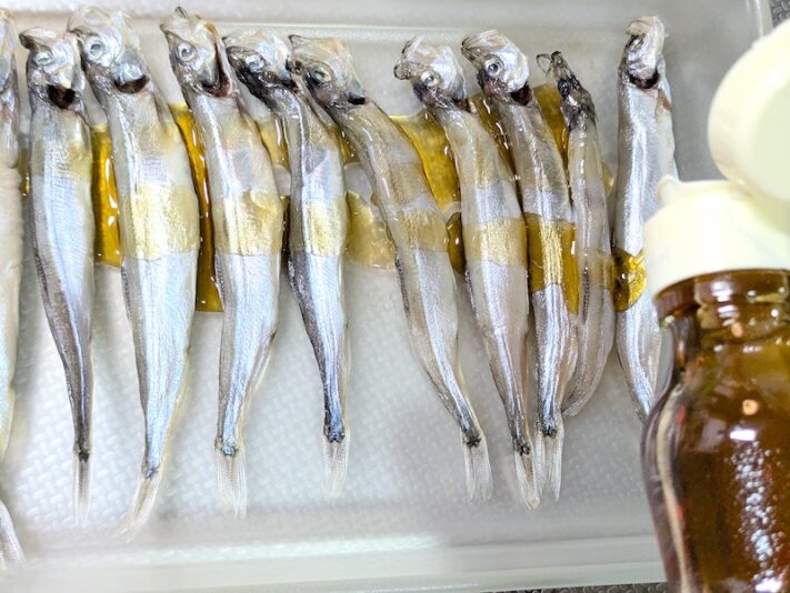 最近は「ししゃも」にごま油をかけて焼くとめちゃくちゃ美味しいことに気づき、ごま油をかけて食べる機会が激増しました。