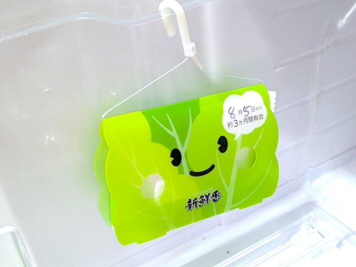 1個で3ヶ月ほど効果が持続するらしいので、月に約100円で野菜や果物の鮮度がキープできるという安心感を得るために野菜庫に入れて見守ってもらっています。いつもありがとう。