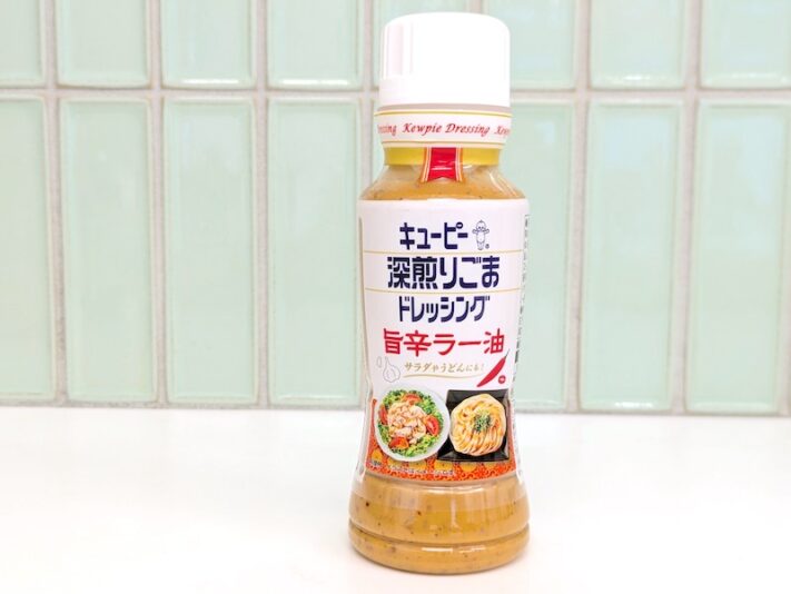 日本の食卓を代表するキューピー「ごまドレッシング」に、ラー油のピリ辛さとニンニクの旨みが融合したハイブリッドな逸品。