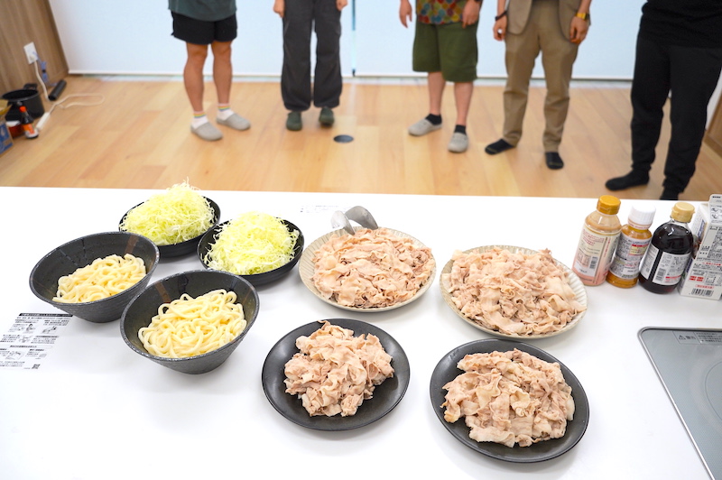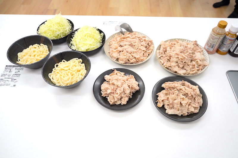 僕ひとりのジャッジでは一番のオススメと断言できないため、社内のメンバーにも5品のタレを食べ比べてもらうべく大量の豚しゃぶを用意しました!!