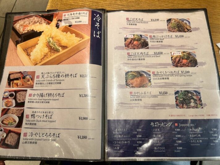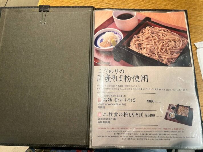 公式HPの説明通り、メニュー表も分厚く、そばの他に種類豊富な日本酒も注文でき、なんと飲み比べもできるようです。