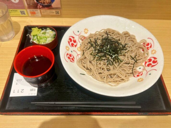 注文方法は入り口横にある券売機、今回買ったのは冷ざるそばです。