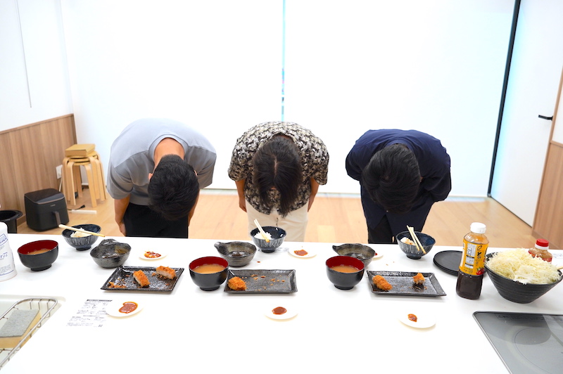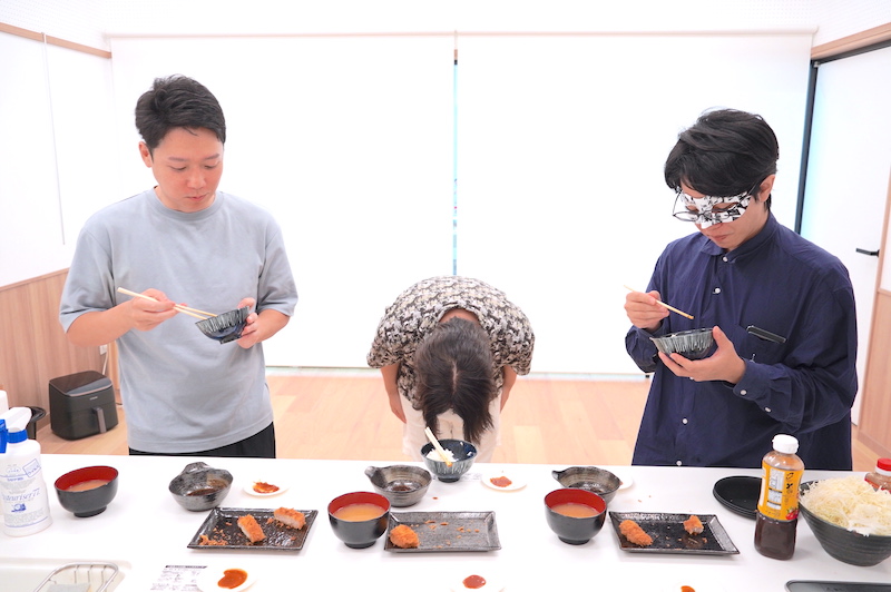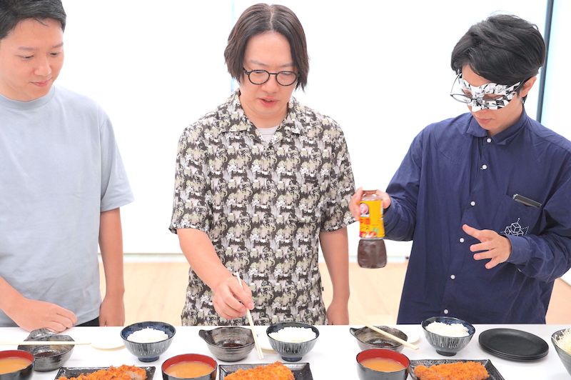 最初の一口目は味の基準となる普通の「中濃ソース」でとんかつを試食して頂きます。