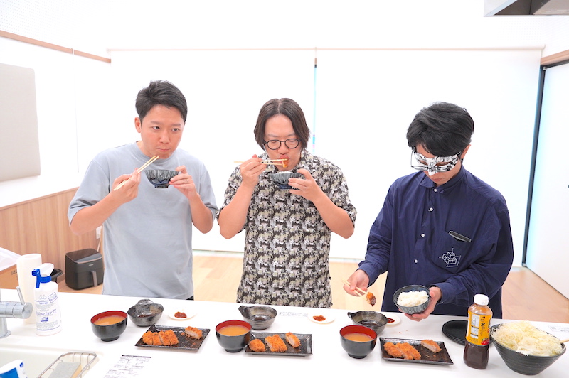 撮影前に溢れた『引退』という文字が吹き飛ぶほど、3名の口から『うまいなこのソース』という言葉が咲き乱れます。