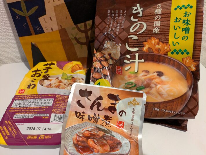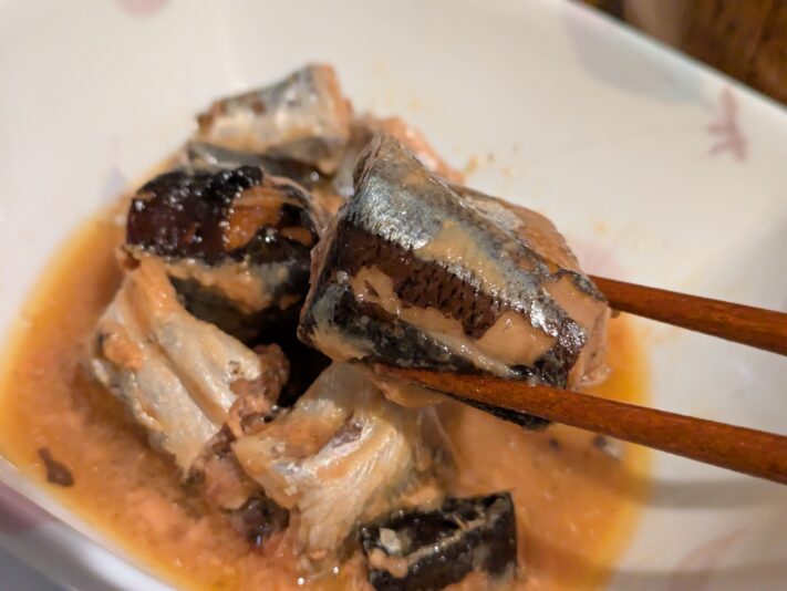 サバの味噌煮はスーパーとかでもよく見るけどさんまは珍しいですね。大した労力もかけず、こんなものが食べれるなんて。パウチなので1年以上期限が持つのも嬉しい!