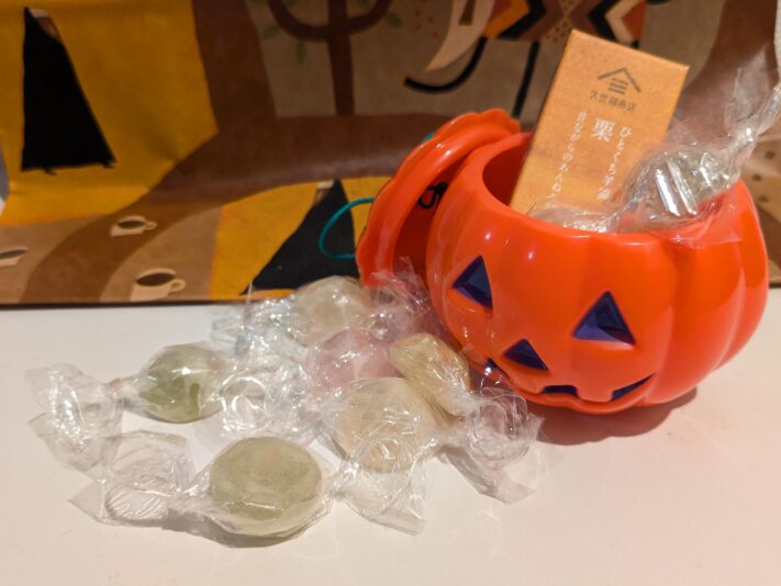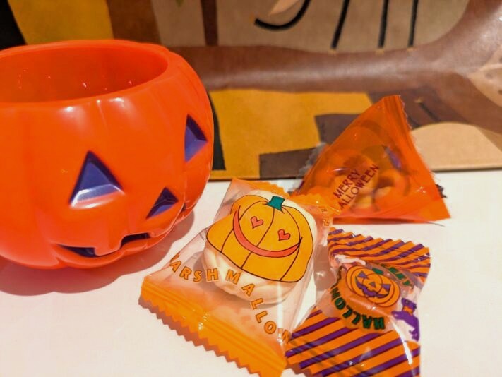 子供は“容器にお菓子が詰められている状態”が好きなので、気軽に買えるのは嬉しいところ。中のお菓子もカボチャ味などで凝っている。