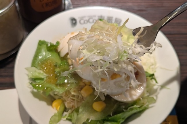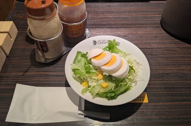 シンプルな生野菜と固ゆで卵に、和風のドレッシングが……合う合うアウアウアウーーーーーーッッッッ!!! こんなんアシカになっちまうわ!! 責任取って曲芸仕込んでくれるわけ!?
