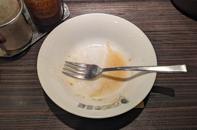 はっ! 気付いたら皿がからっぽになってる。一体僕は何を? 途中から記憶が曖昧でよく思い出せない……ま、うまかったからいいか! 「でも幸せならOKです」つってね! このネットミームが流行るなら、もっと良い世の中であってくれよ。