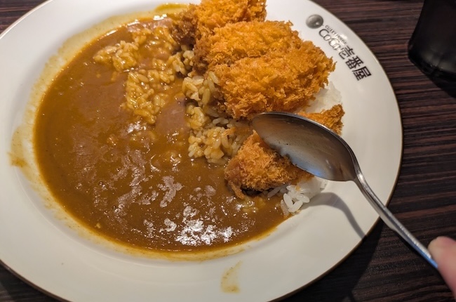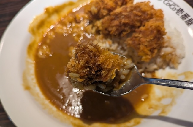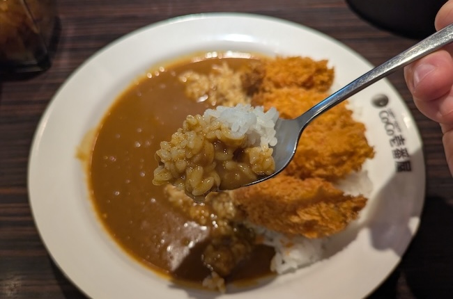 まずはライスとルーだけで一口をば……うん、うまい! 改めて思うけど、このレベルのカレーが当たり前に食べられるってココイチやばない!? もし僕がカレー屋さんを目指してたら心折れちゃうって! よっ、カレー界の『ルックバック』! さしずめライスが藤野、ルーが京本ってとこかい?