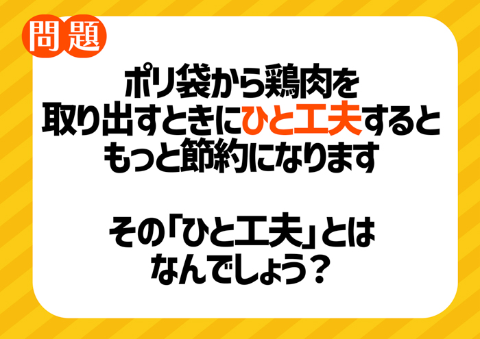 さあ、そんな料理に大活躍のポリ袋についての問題はこちら!