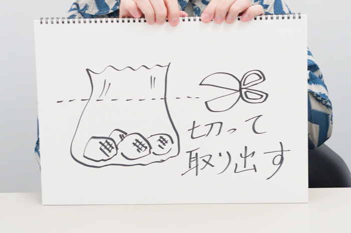 これは、ポリ袋から鶏肉を取り出すときの自分をよくイメージしてもらえば分かると思います