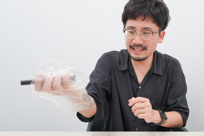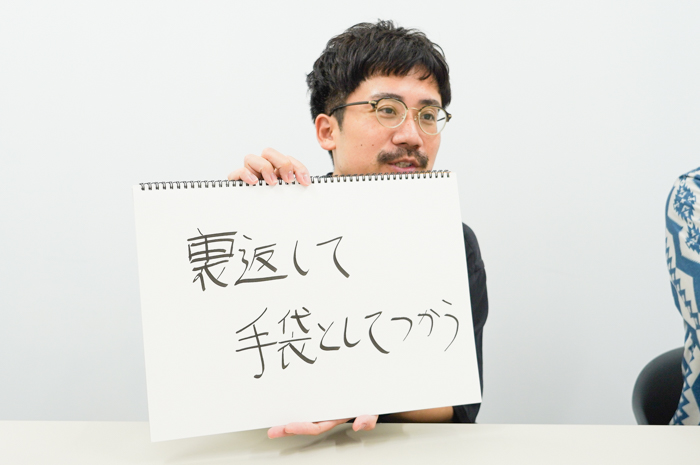 こういうふうに手を突っ込めば、そのまま手袋として利用できるのかな、と