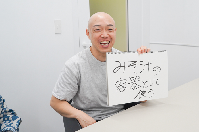 みくのしんは、ここからさらに限界まで使い切るために、お湯を入れて味噌を溶かします