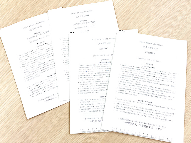 気象予報士試験は、マークシート式の学科試験2科目と記述式の実技試験という3つの科目に分かれており、すべてで合格の判定を得ると試験クリアとなります!