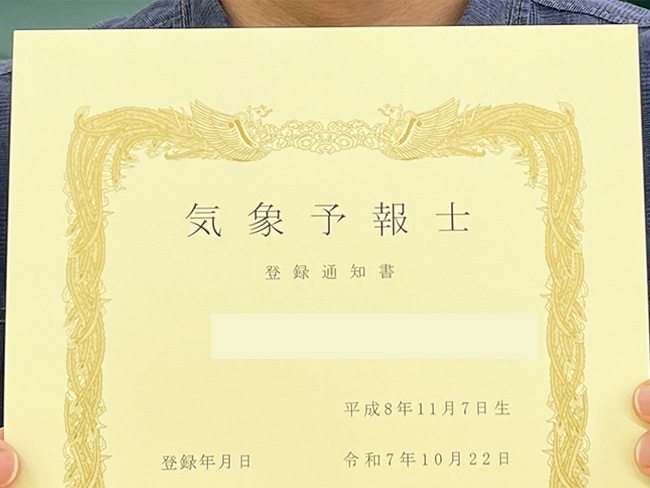 気象に関する知識や気象データを利用する能力などを測る気象予報士試験に合格し、気象庁長官の登録を受けると気象予報士になることができます。