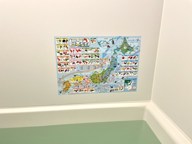 気象予報士試験では日本列島の姿を見まくるため、子ども向けの耐水性の日本地図を風呂場に貼り、入浴時に眺めていました。1年半以上続けていますが効果があったのかは分かりません。長崎県がびわの名産地であることは覚えました。