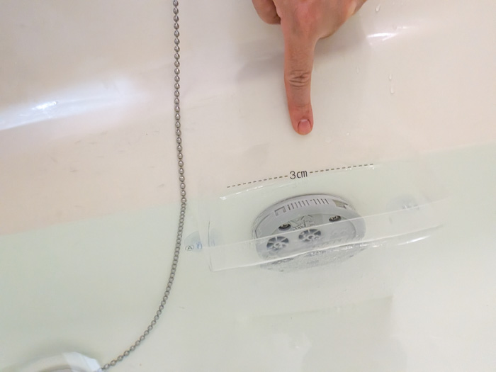 ただ、まだ配管には洗浄剤と汚れが残っている可能性があるので、お湯を張って配管の中に残った汚れと洗浄剤を排出します。