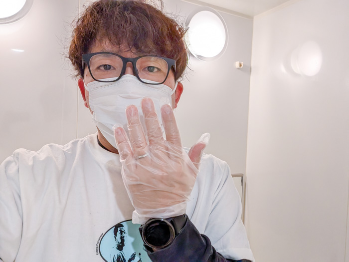 ちなみに注意書きに安全のために手袋とマスクを装着するよう書かれているのでその通りにします。
