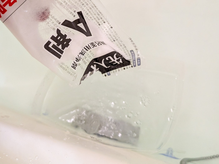 お湯がうっすら白く濁りましたが、見た目はほとんど透明のまま。