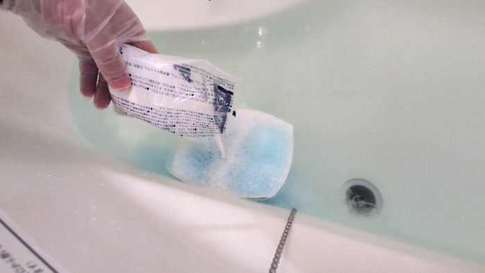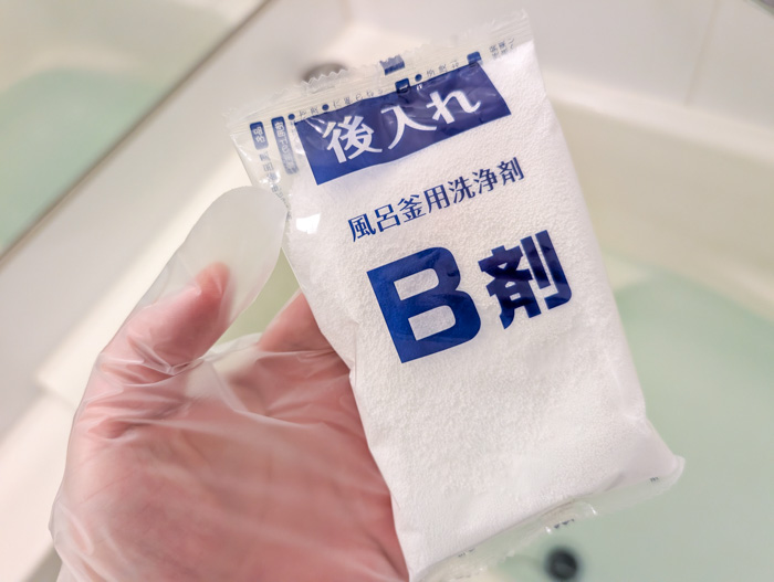 追い炊きが終了し、10分お湯を冷ましてからB剤を投入します。