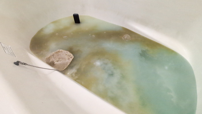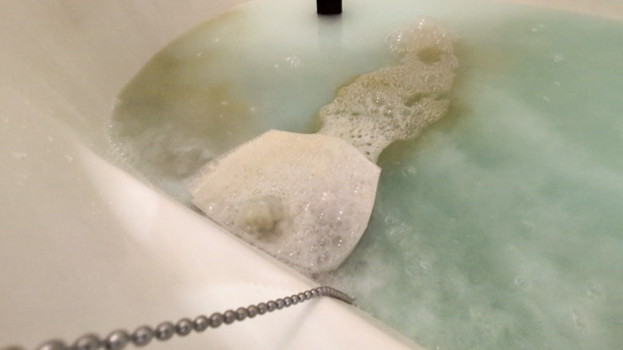これを汚れが出なくなるまで繰り返し行い、最後にぬるま湯ですすいで、浴槽を軽くこすり洗いして完了!