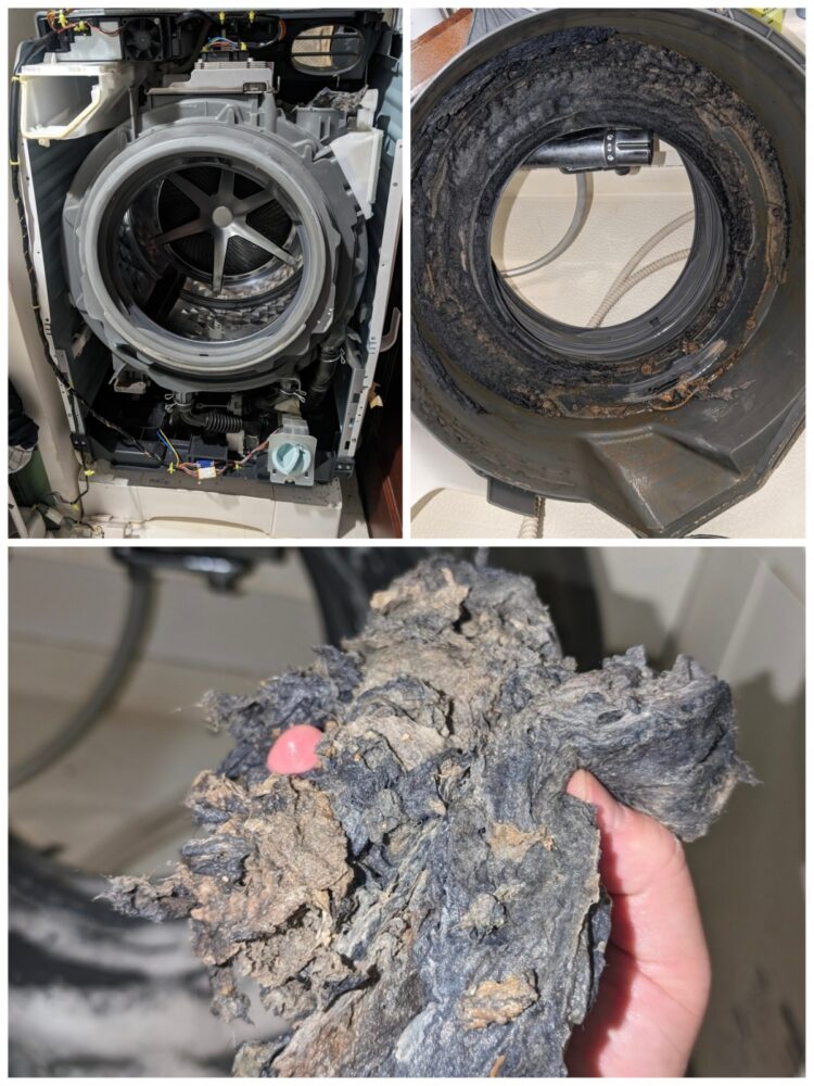 洗濯槽の分解洗浄の様子
