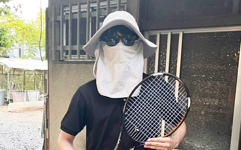 顔の周り全てを覆うハットです。私はよくテニスをするのですが、夏場はこれとサングラスを装着してプレーしていました。「何が何でも紫外線を本気でガードしたいガチ勢の人が使うもの」という印象もあるかもしれませんが、単純に日差しを遮ることで肉体的負担が大きく軽減します。運動用の日傘みたいなものです。口元がメッシュ素材になっているからか呼吸も苦しくありませんし(私の心肺機能が強靭なだけだったらすみません)、テニスコートに着いてこれを忘れていることに気づいたら絶望するぐらいには必需品になっていました。