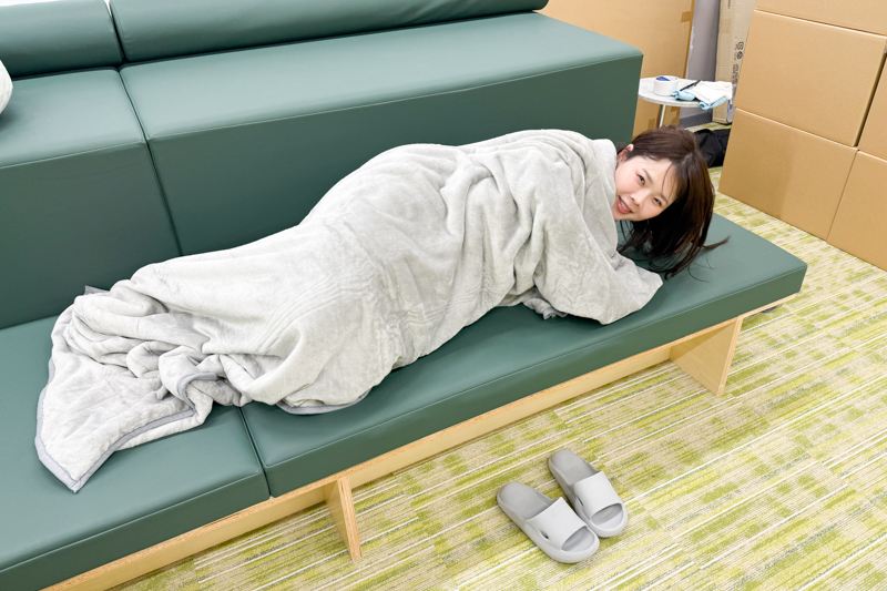 会社で昼寝しようと思うと季節問わず、ソファや床が冷たいので買いました!寝袋みたいな形なので、体が全部包まれて春巻きです。内側の素材がふわふわなので本当に気持ちがええです