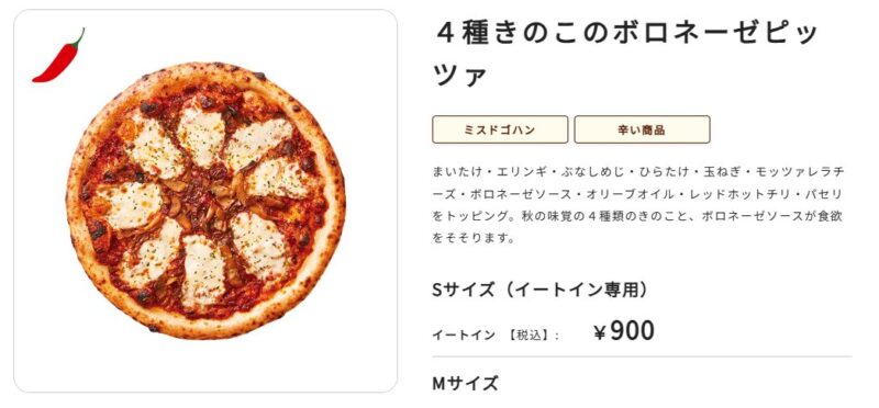 サイズはS、M、LとありますがSサイズはイートイン限定。1人でお手軽サイズのピザを食べれる店ってのはどこにあっても嬉しいですね。